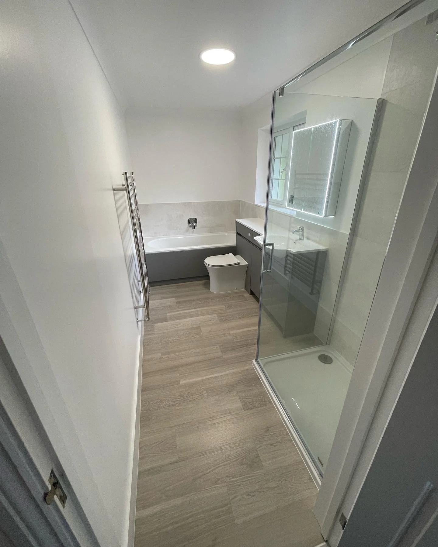 Had my bathroom, toilet and new upstairs radiators done in January. He helped us choose and visualise what would work in our bathroom and toilet was really helpful. He was very punctual everyday. Always tided up at the end of the day. I couldn't believe how quick it came together. Really love my new bathroom finished to an exceptional standard. Would highly recommend this very professional company.
